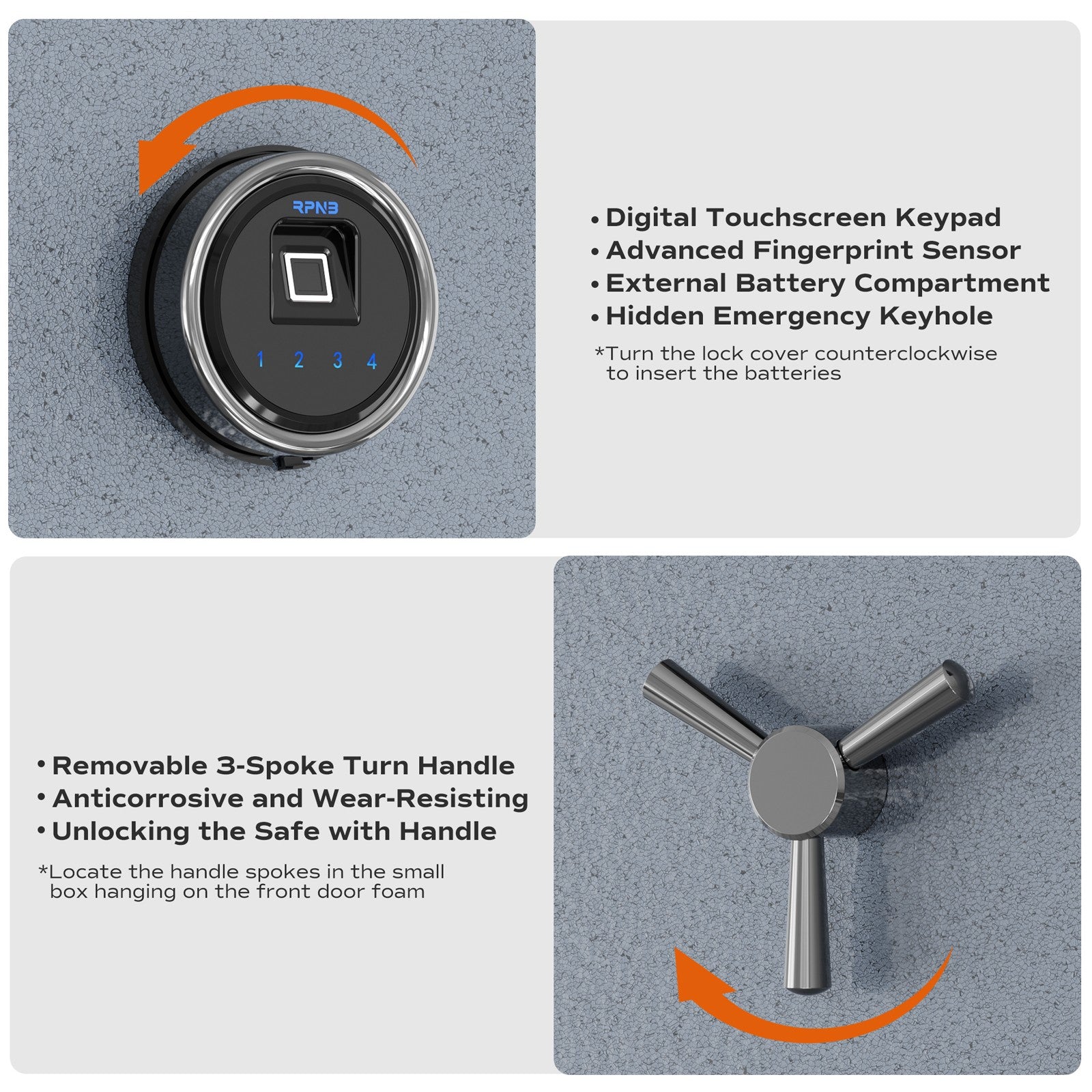 ● 3 methods for quick entry: key Lock & biometric fingerprint & 4-digit backlit keypad