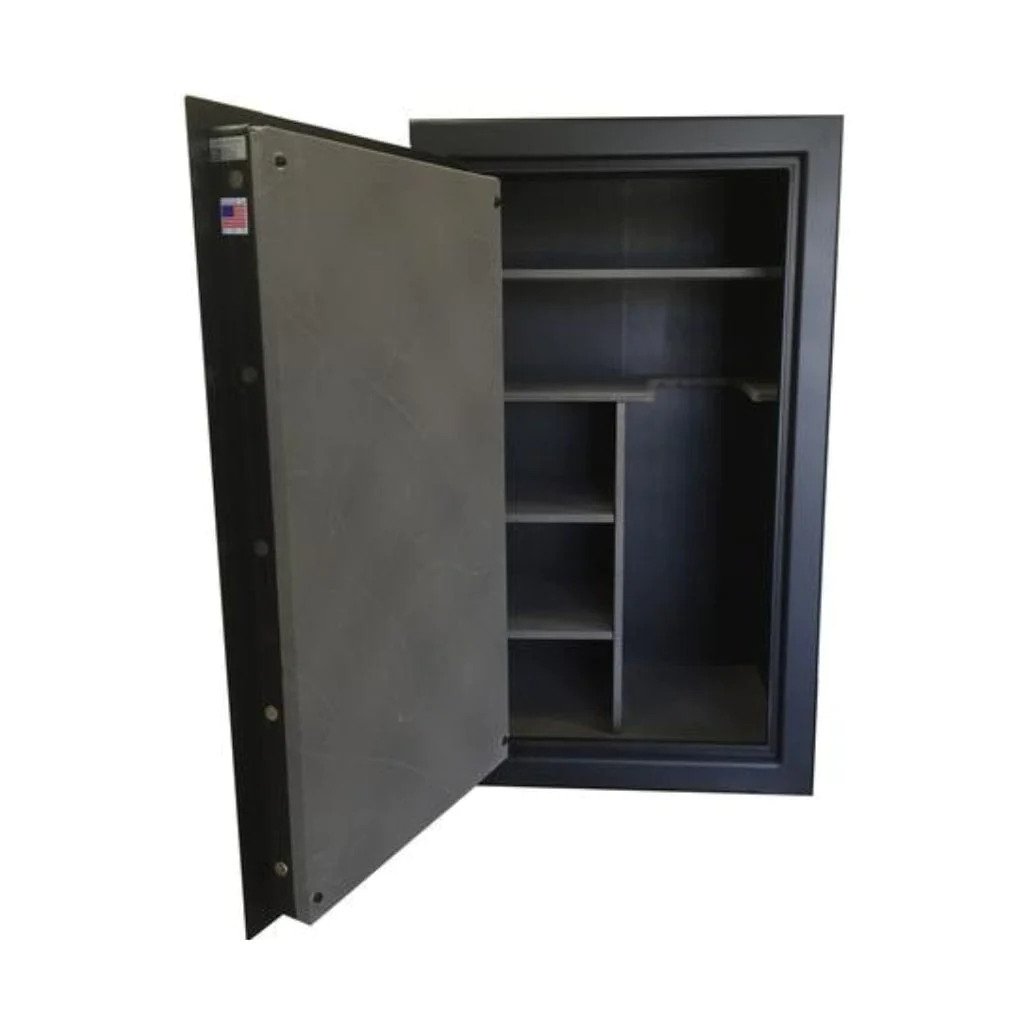 Sun Welding lines the six interior walls with 5/8" fire board. See our fire 'Fire Rating' tab for more information. Then we hand build each interior from solid 3/4" particle board. It is then finished a velour fabric (variety of colors to choose from). With three standard rifle configurations to choose or a solid collector shelf interior we have the interior for you. We can also custom build an interior made to your specifications. See 'Interiors' tab to view our interior options. There are six pre-drilled mounting holes in the bottom of every safe for bolting the safe down to the floor.